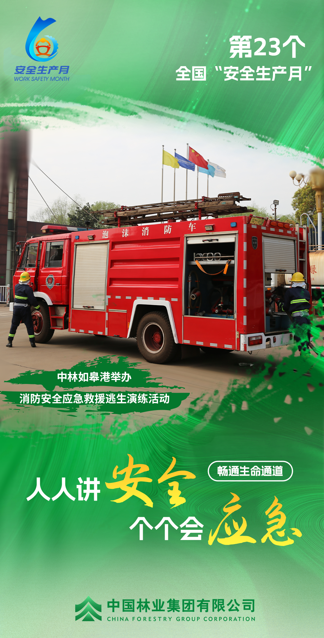 自全国“安全生产月”活动启动以来,中林时代深入贯彻习近平总书记关于安全生产重要论述和重要指示批示精神,认真落实国务院国资委和集团公司对“安全生产月”活动的工作部署,按照相关要求,所属中林如皋港、中林新民洲港及镇江国林生态产业城迅速响应,召开动员会议,详细安排,聚焦“畅通生命通道”这一主要内容,充分利用海报、视频等多元化形式讲解生命通道标识的含义和识别方法、保持畅通的必要性和法律责任;通过开展安全生产知识培训、组织安全生产大检查、举行安全生产应急处置演练、设立安全生产奖励机制等,突出生命通道在避险逃生和应急救援中的关键作用,宣传应急疏散知识和技能,增强全员应对突发事件的避险、逃生能力。中林时代将以“安全生产月”工作部署为契机,进一步落实落细各项防范措施,从严从紧推动落实安全环保各项工作,以高水平安全管理工作保障高质量发展。