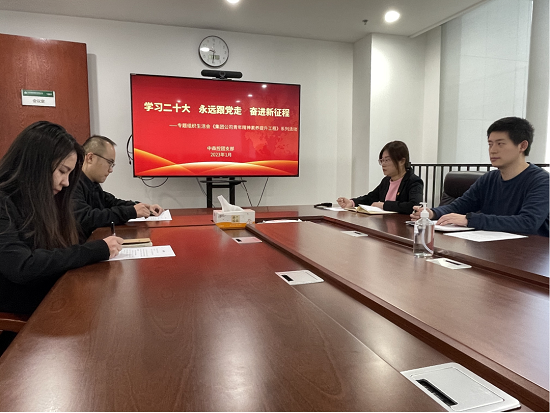 1月16日,重庆林投公司团总支组织本部团支部和中林科技团支部开展“学习二十大、永远跟党走、奋进新征程”专题组织生活会,深入学习党的二十大精神,推动青年精神素养工程进一步落实。团员们聚焦“三个问题”并结合自身情况逐一发言,表示要在今后的工作中,紧紧围绕集团公司“两个目标”、“四个定位”,在国储林建设事业中为“双碳”目标实现贡献林投青年力量。