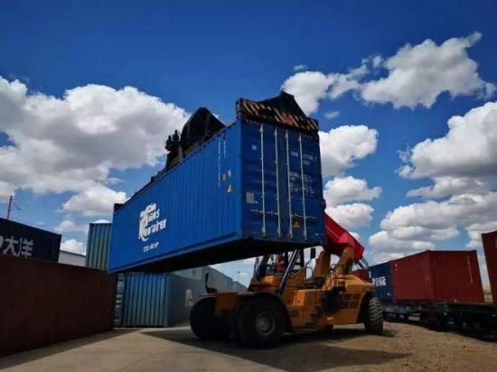 满洲里伊利托:生产必须安全安全促进生产林场集团所属满洲里伊利托物流基地现场部正面起重机驾驶员正在对“中欧班列”集装箱分类码放,便于海关进行查验。(摄影:张云博)林场集团所属满洲里伊利托物流基地现场部门