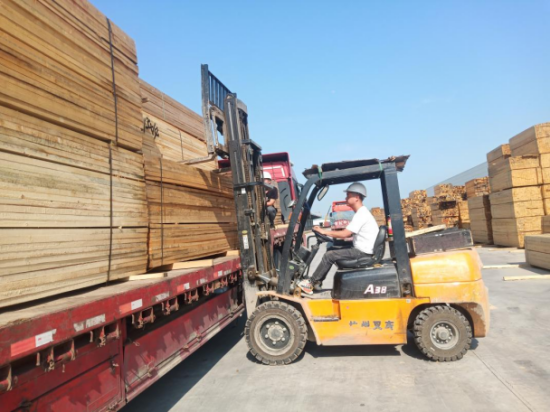 西安中林国铁物流严格把关安全生产林场集团所属西安中林国铁物流的叉车司机(装车员)根据客户选材的种类和规格,从货场不同木材堆垛中,找到对应品类,叉取木材运送到货车上,在不超重、不超高的范围之内合理装车摆