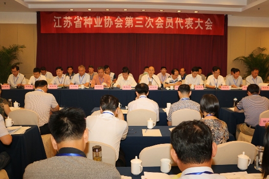 2016年7月12日上午,江苏省种业协会在南京中山大厦举行了换届选举大会。中国种子协会副会长李立秋、省农委副主任张坚勇、省种子管理站站长何金龙等出席会议。各副理事长单位、各市种子管理站、会员代表及特邀专家等共计115名代表参加了会议。